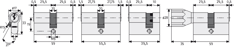 * ab 60 mm geeignet für Feuerschutz-/Rauchschutztüren (T90) durch Brandprüfung DIN EN 1303 Klasse B gemäß EN 1634-2
