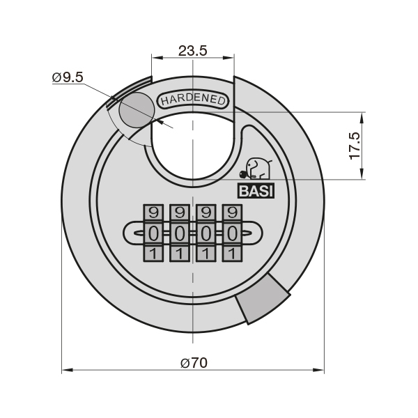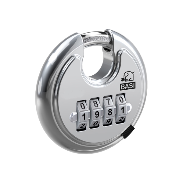 Das RVS 610Z ist ein Rundbügel-Vorhangschloss mit 70 mm Durchmesser und einem Zahlenschloss mit 4-stelliger Zahlenkombination. Die runde Form und die hochwertigen Materialien bieten optimale Sicherheit: Das Gehäuse besteht aus Edelstahl, der Bügel aus gehärtetem Stahl.
