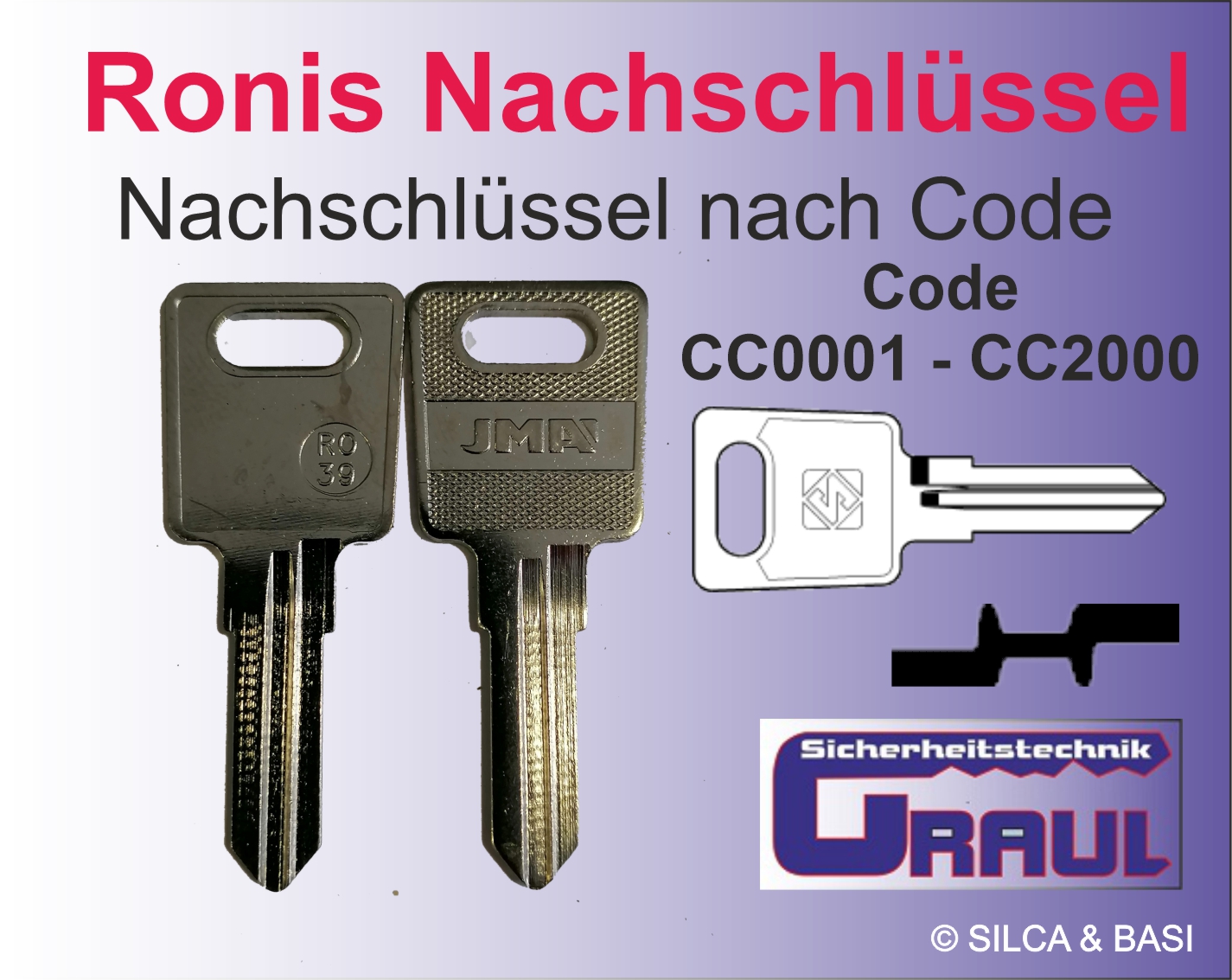 Ronis Nachschlüssel für Kleinzylinder, Möbelzylinder und Stahlschränke