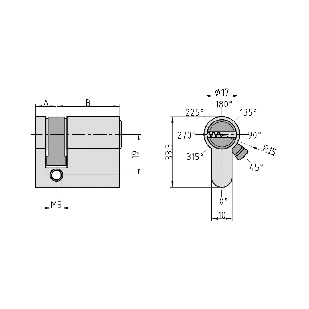 Profil-Halbzylinder, VS, 3 Bohrmuldenschlüssel, 8-fach